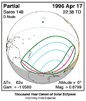 | 1996 Apr 17 | 22:38:12 | Partial | 148 | 0.880 | - | New Zealand, s Pacific Ocean |