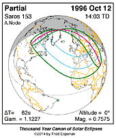 | 1996 Oct 12 | 14:03:04 | Partial | 153 | 0.758 | - | ne North America, Europe, n Africa |