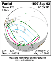 | 1997 Sep 02 | 00:04:48 | Partial | 125 | 0.899 | - | Australia, New Zealand, Antarctica |