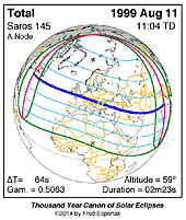 | 1999 Aug 11 | 11:04:09 | Total | 145 | 1.029 | 02m23s | e North America, n Africa, Europe, Asia