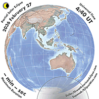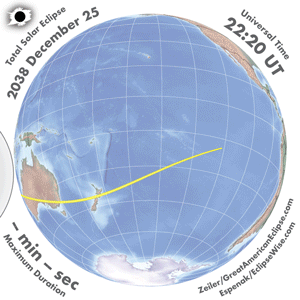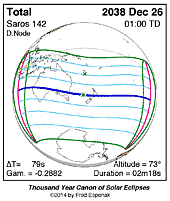 | 2038 Dec 26 | 01:00:10 | Total | 142 | 1.027 | 02m18s | se Asia, East Indies, Australia, New Zealand, s Pacific, Antarctica