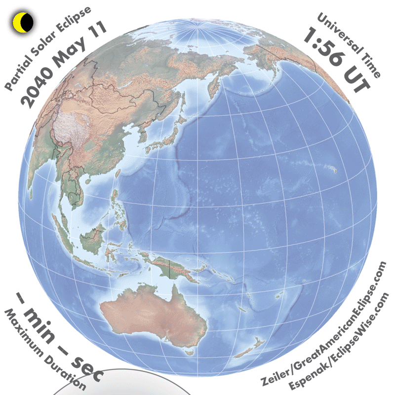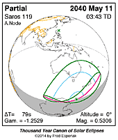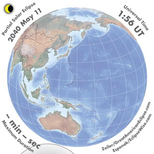 | 2040 May 11 | 03:43:02 | Partial | 119 | 0.531 | - | Australia, New Zealand, Antarctica |