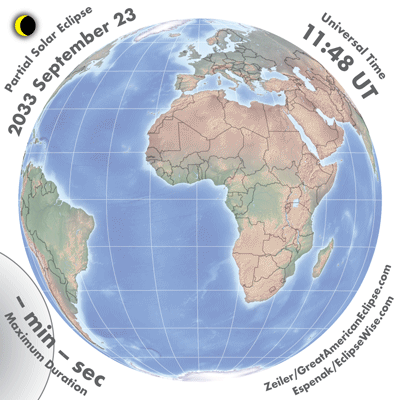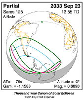 | 2033 Sep 23 | 13:54:31 | Partial | 125 | 0.689 | - | s South America, Antarctica |