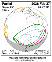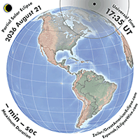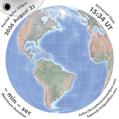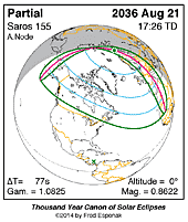 | 2036 Aug 21 | 17:25:45 | Partial | 155 | 0.862 | - | Alaska, Canada, Arctic, w Europe, nw Africa |