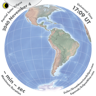 | 2040 Nov 04 | 19:09:02 | Partial | 124 | 0.807 | - | N. & C. America |