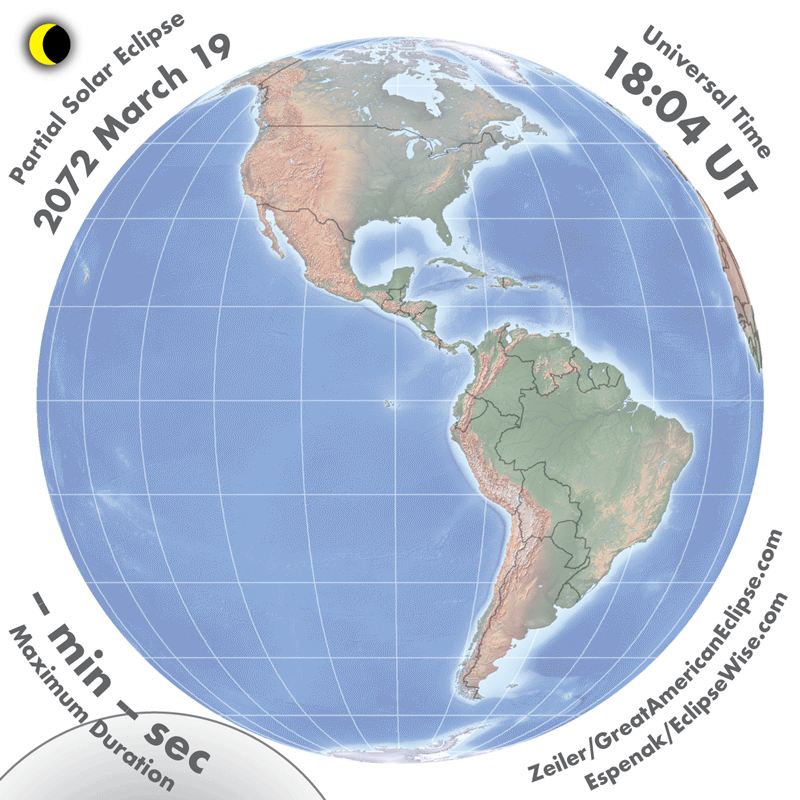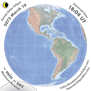 | 2072 Mar 19 | 20:10:31 | Partial | 150 | 0.720 | - | Antarctica, South America |