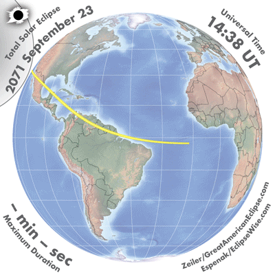 | 2071 Sep 23 | 17:20:28 | Total | 145 | 1.033 | 03m11s | Americas, Africa