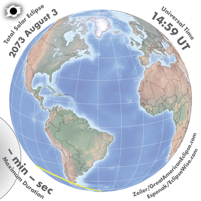 | 2073 Aug 03 | 17:15:23 | Total | 127 | 1.029 | 02m29s | South America, Antarctica