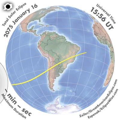 | 2075 Jan 16 | 18:36:04 | Total | 142 | 1.031 | 02m42s | New Zealand, South America, Antarctica,