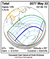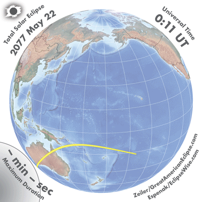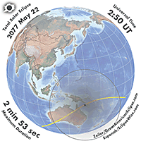 | 2077 May 22 | 02:46:05 | Total | 129 | 1.029 | 02m54s | Indies, Australia, New Zealand, Antarctica