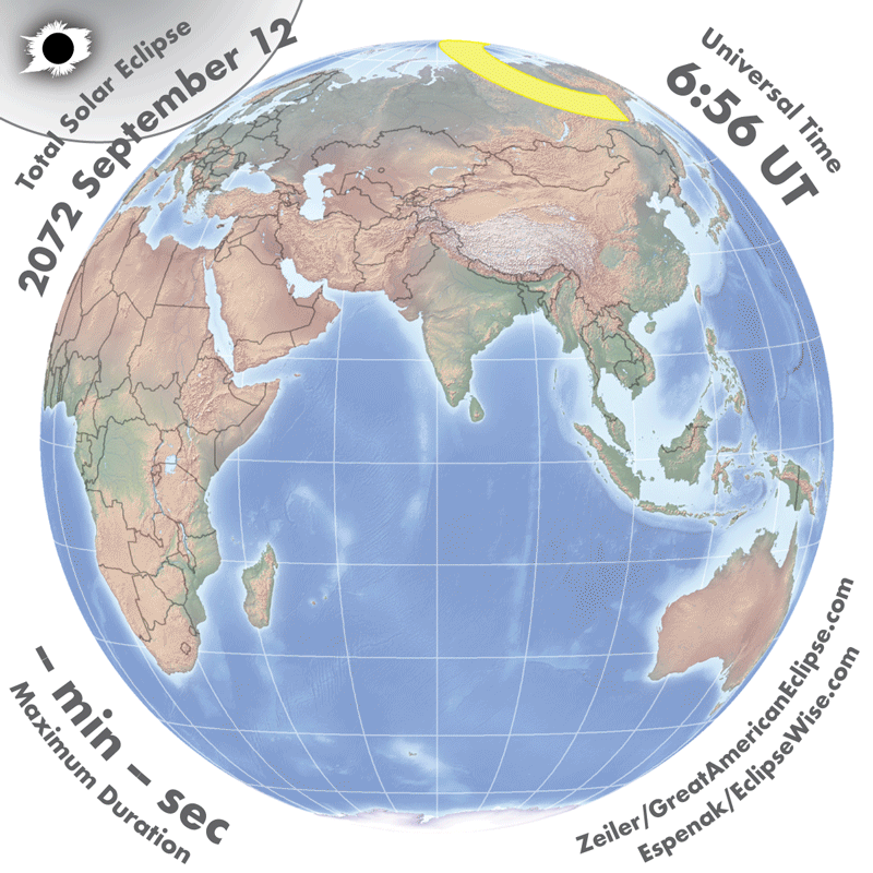 | 2072 Sep 12 | 08:59:20 | Total | 155 | 1.056 | 03m13s | Greenland, Europe, Asia