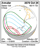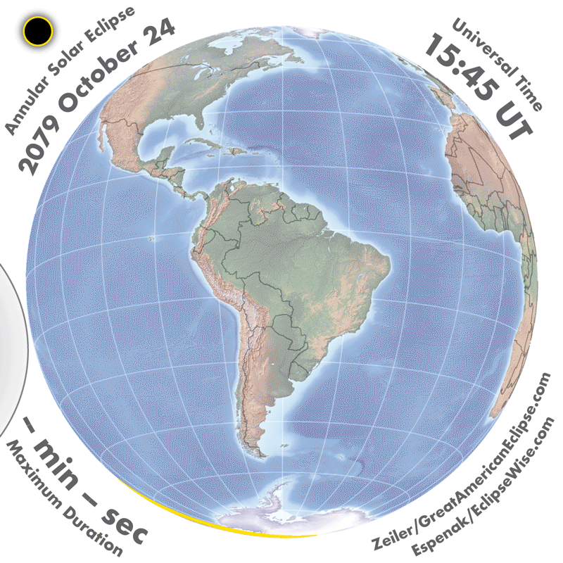 | 2079 Oct 24 | 18:11:21 | Annular | 154 | 0.948 | 03m39s | Antarctica, New Zealand, South America