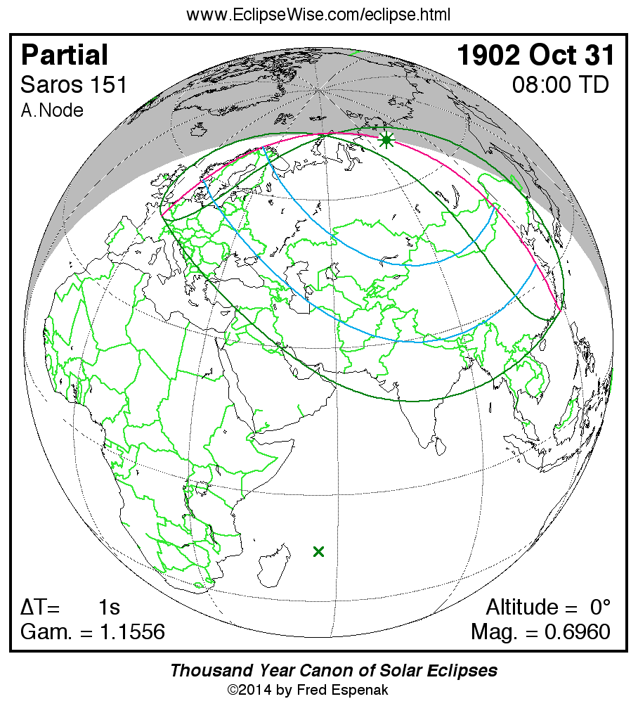 - Google Map: Partial Solar Eclipse of 1902 Oct 31 - interactive map of the eclipse path