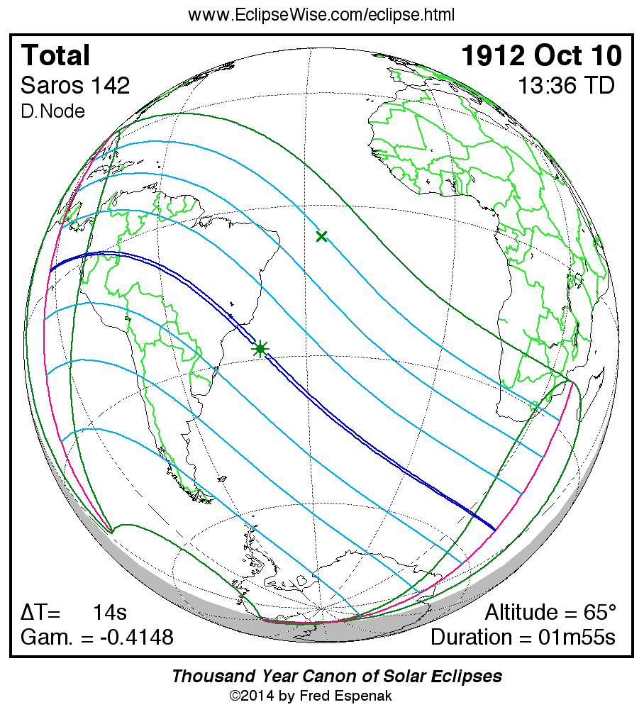 - Orthographic Map: Total Solar Eclipse of 1912 Oct 10 - detailed map of eclipse visibility
