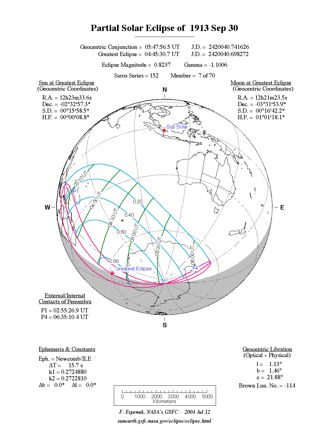 - Orthographic Map: Partial Solar Eclipse of 1913 Sep 30 - detailed map of eclipse visibility