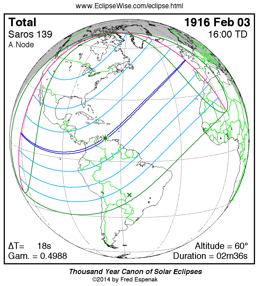 - Orthographic Map: Total Solar Eclipse of 1916 Feb 03 - detailed map of eclipse visibility