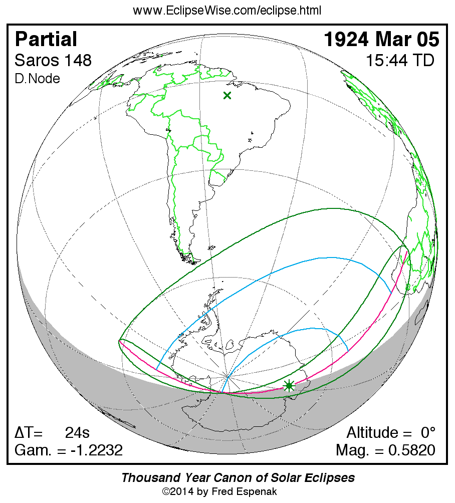 - Orthographic Map: Partial Solar Eclipse of 1924 Mar 05 - detailed map of eclipse visibility