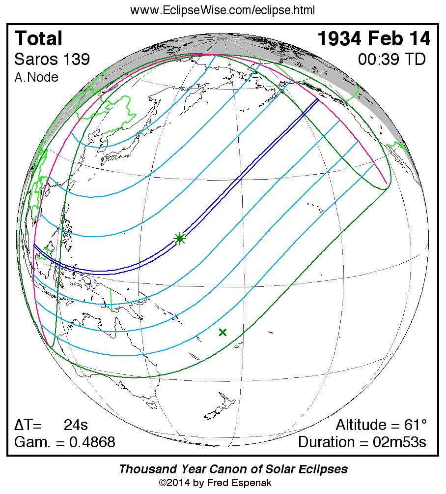 - Orthographic Map: Total Solar Eclipse of 1934 Feb 14 - detailed map of eclipse visibility