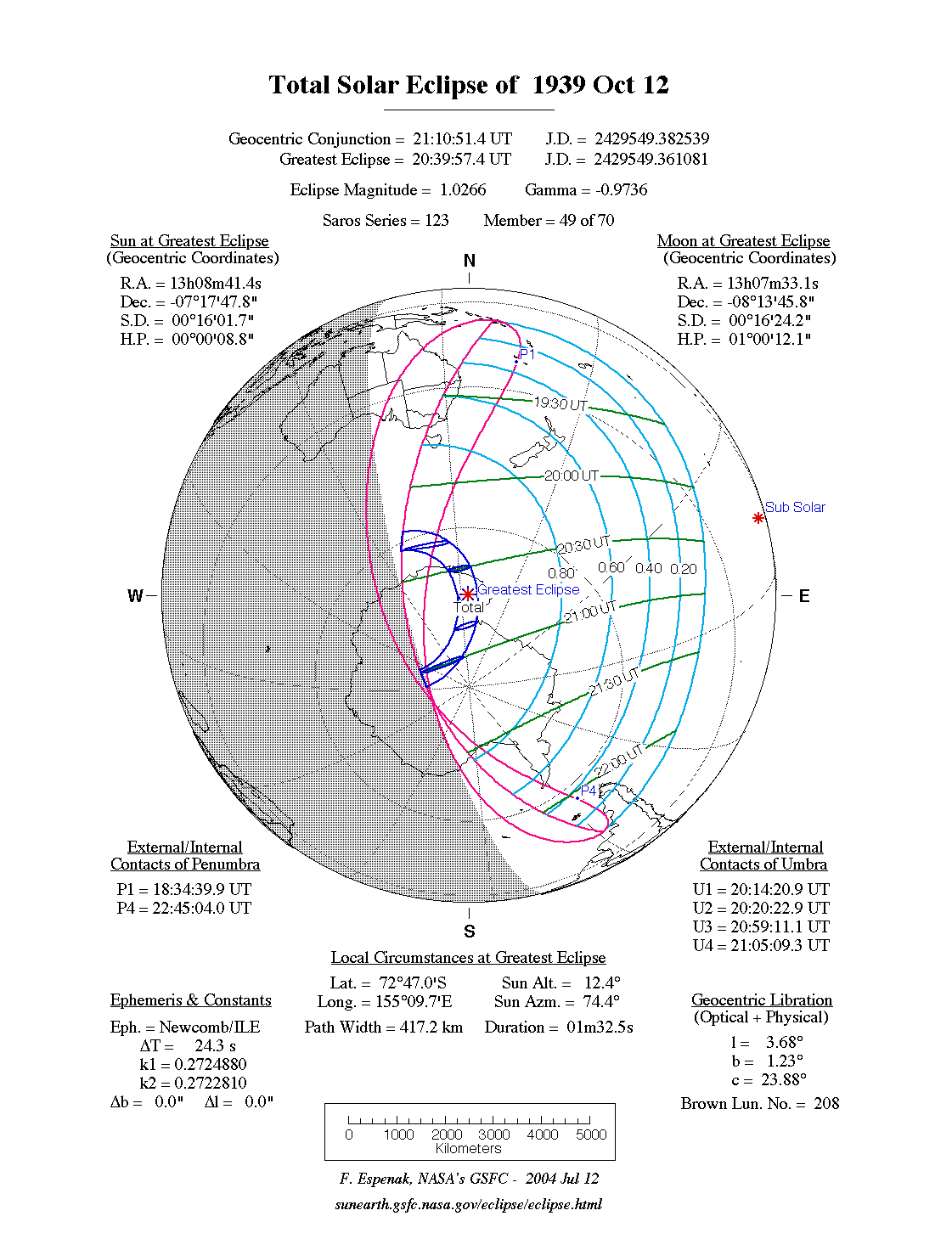 - Prime Page: Total Solar Eclipse of 1939 Oct 12
