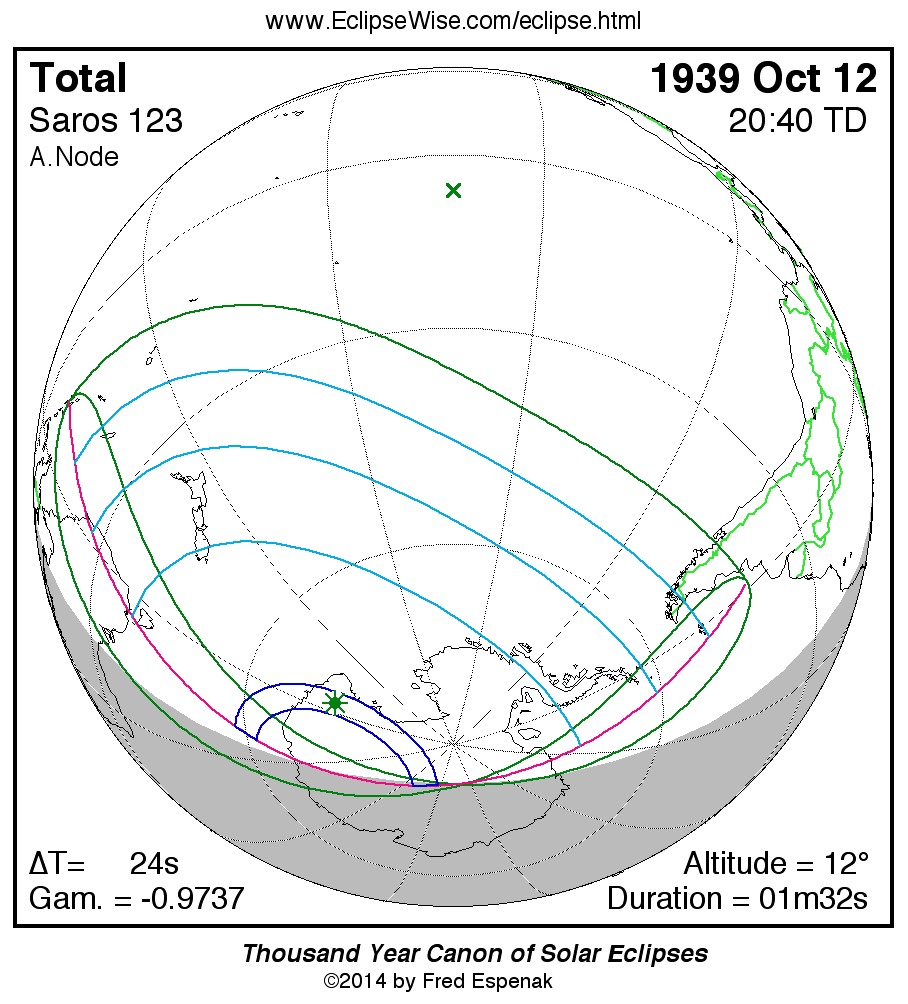 - Orthographic Map: Total Solar Eclipse of 1939 Oct 12 - detailed map of eclipse visibility