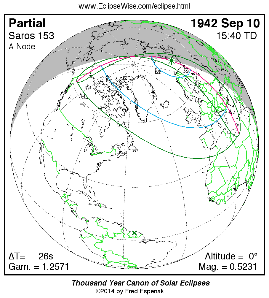 - Orthographic Map: Partial Solar Eclipse of 1942 Sep 10 - detailed map of eclipse visibility