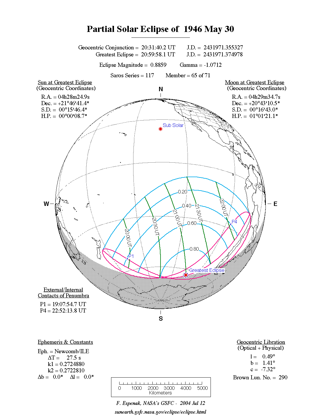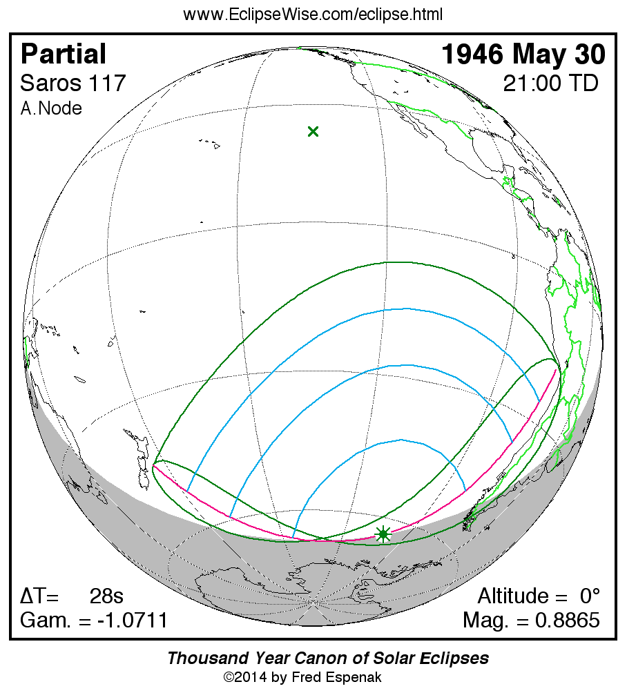 - Orthographic Map: Partial Solar Eclipse of 1946 May 30 - detailed map of eclipse visibility