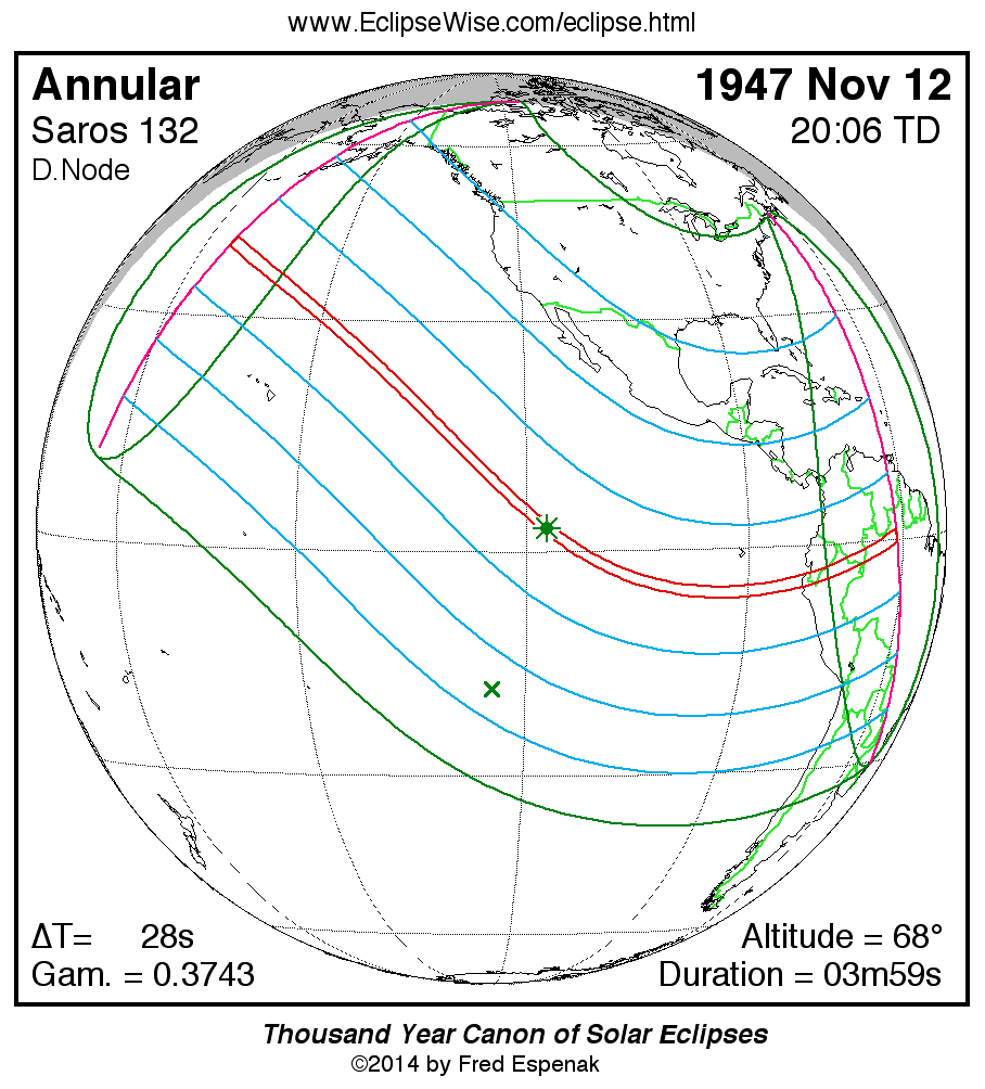- Orthographic Map: Annular Solar Eclipse of 1947 Nov 12 - detailed map of eclipse visibility