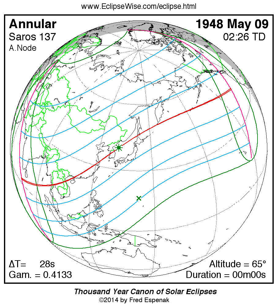 - Orthographic Map: Annular Solar Eclipse of 1948 May 09 - detailed map of eclipse visibility