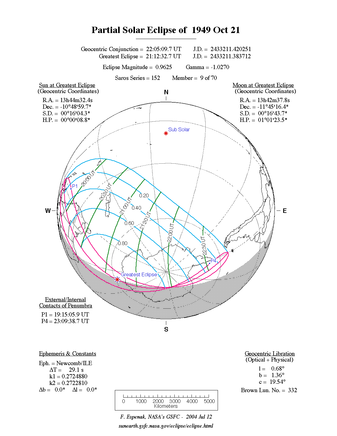 - Prime Page: Partial Solar Eclipse of 1949 Oct 21