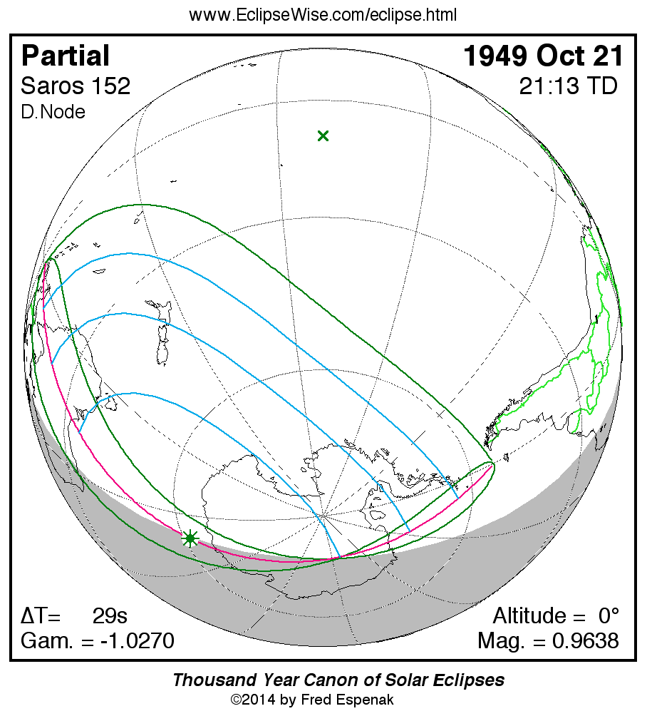 - Orthographic Map: Partial Solar Eclipse of 1949 Oct 21 - detailed map of eclipse visibility