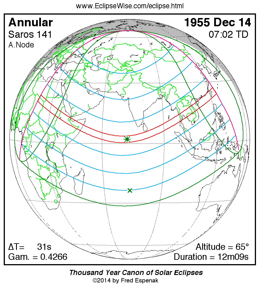 - Orthographic Map: Annular Solar Eclipse of 1955 Dec 14 - detailed map of eclipse visibility