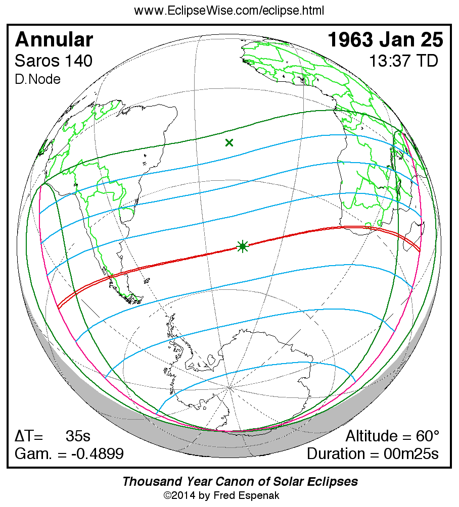 - Orthographic Map: Annular Solar Eclipse of 1963 Jan 25 - detailed map of eclipse visibility