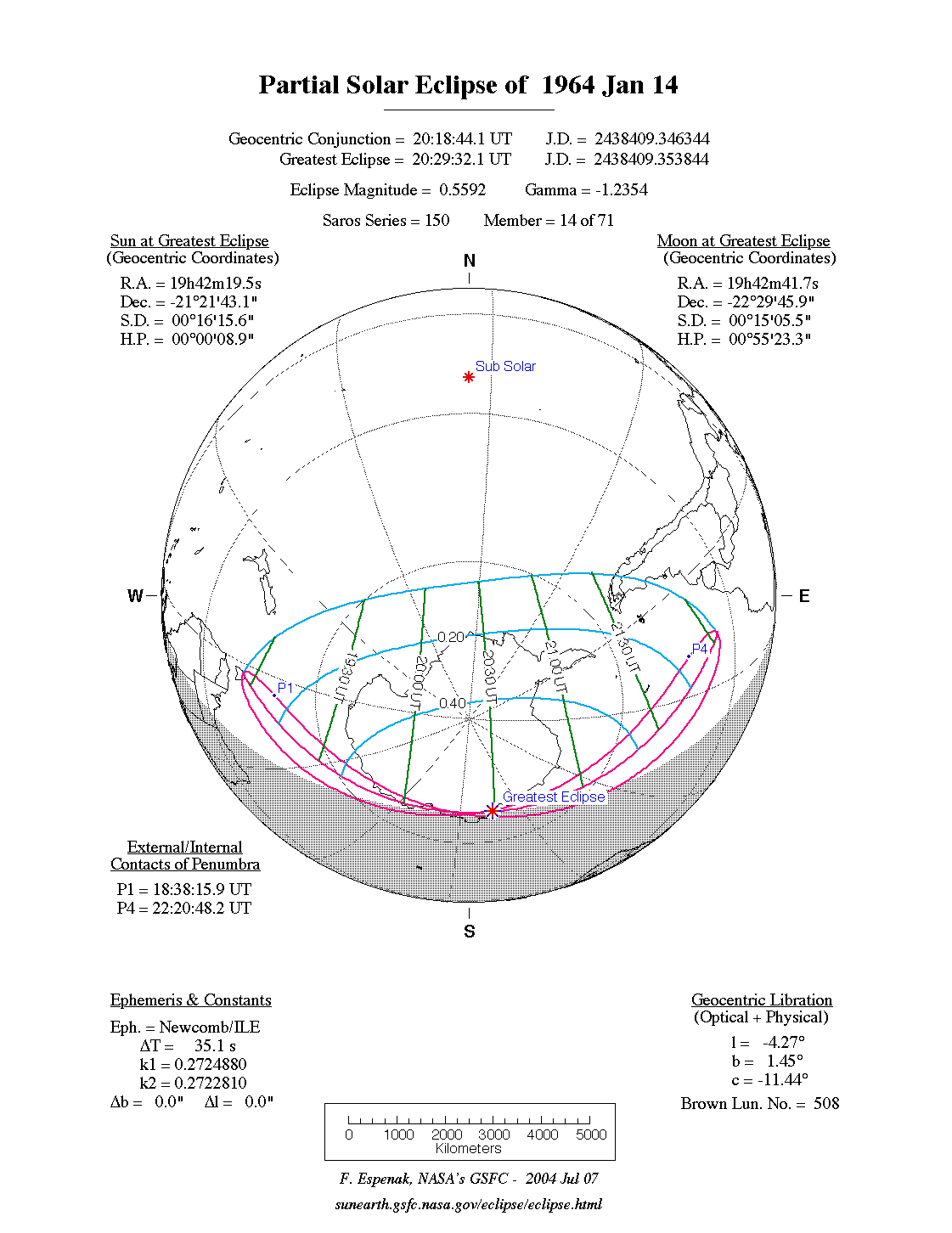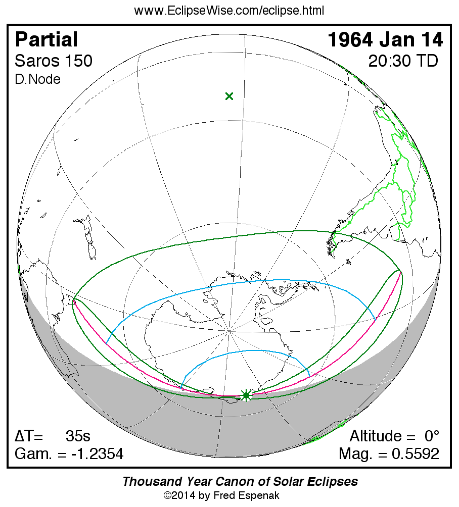 - Orthographic Map: Partial Solar Eclipse of 1964 Jan 14 - detailed map of eclipse visibility