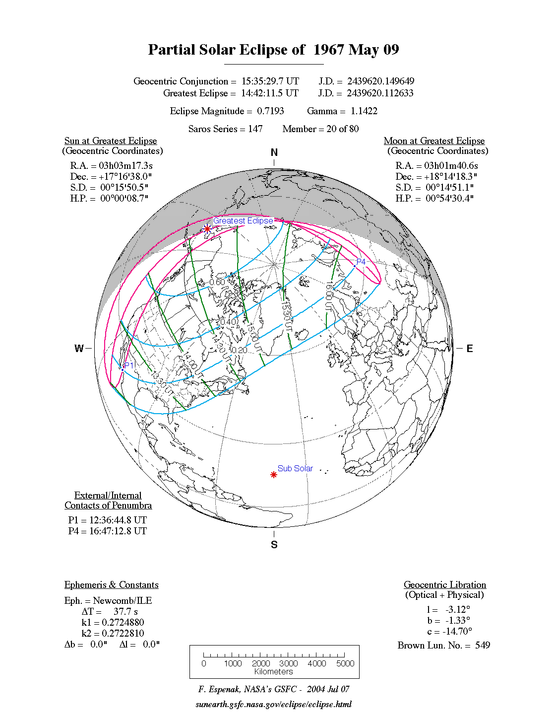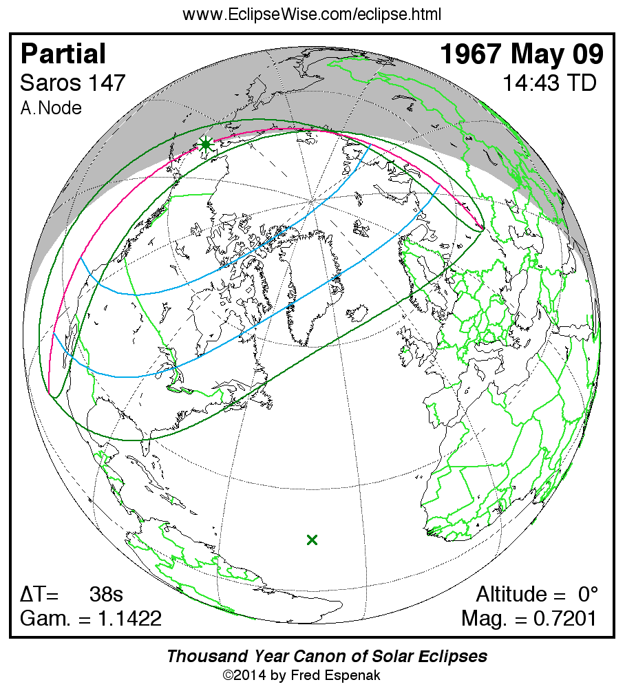 - Orthographic Map: Partial Solar Eclipse of 1967 May 09 - detailed map of eclipse visibility