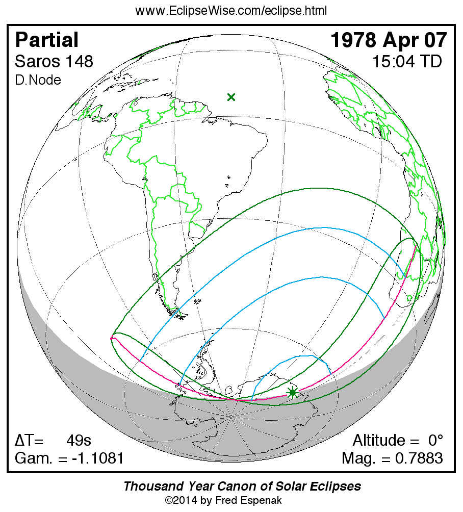 - Orthographic Map: Partial Solar Eclipse of 1978 Apr 07 - detailed map of eclipse visibility