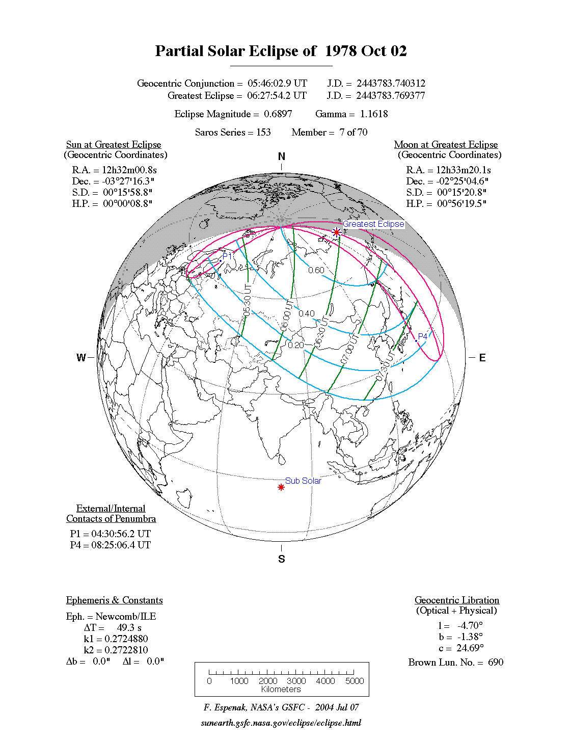 - Orthographic Map: Partial Solar Eclipse of 1978 Oct 02 - detailed map of eclipse visibility