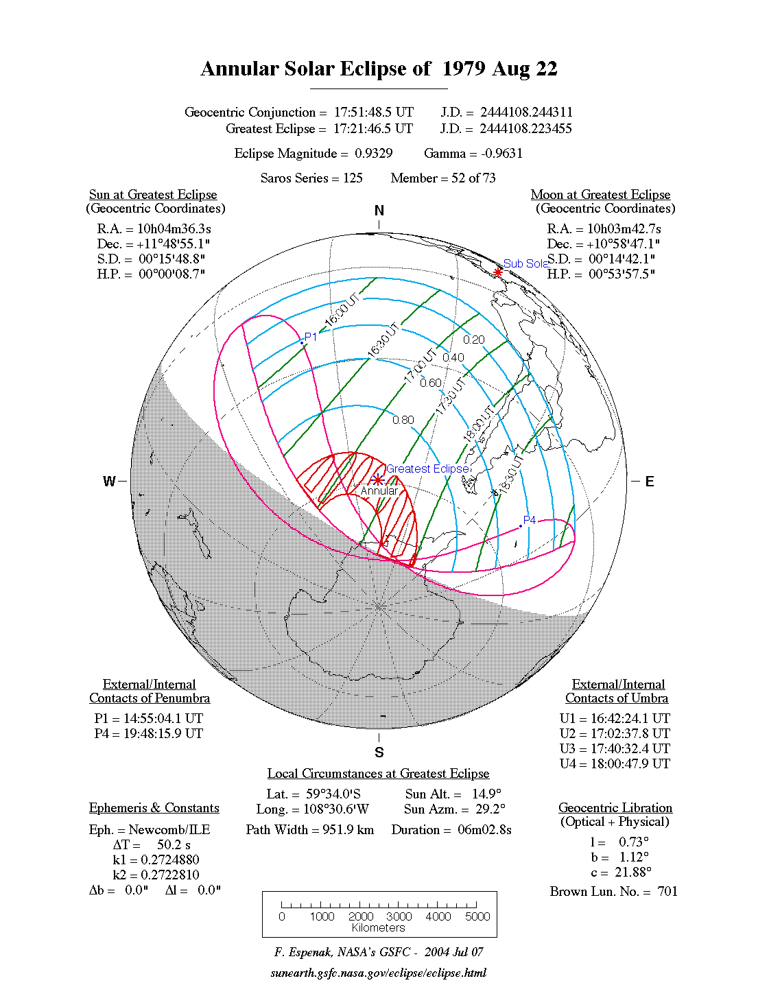 - Path Table: Annular Solar Eclipse of 1979 Aug 22 - coordinates of the central line and path limits