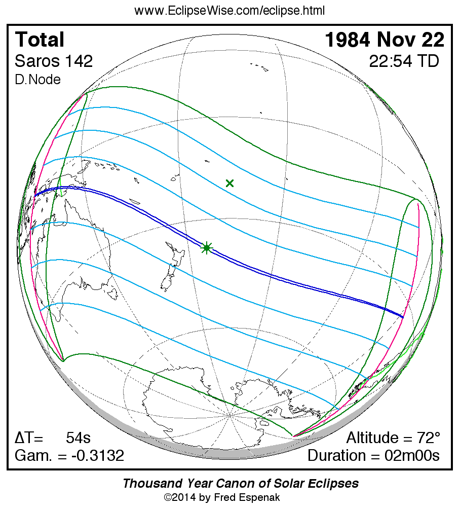 - Orthographic Map: Total Solar Eclipse of 1984 Nov 22 - detailed map of eclipse visibility