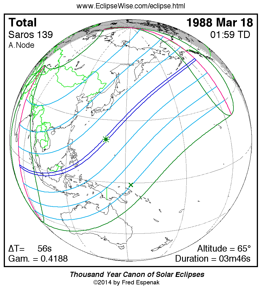 - Orthographic Map: Total Solar Eclipse of 1988 Mar 18 - detailed map of eclipse visibility