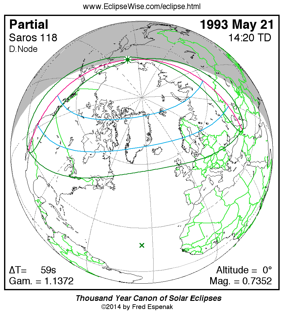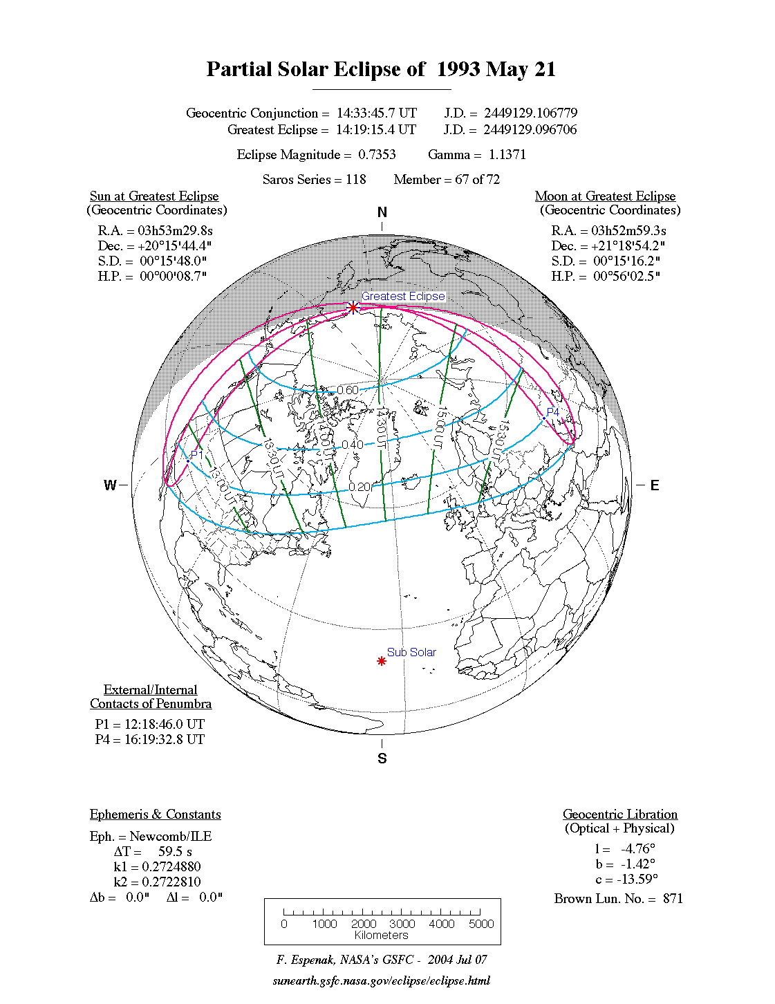 - Orthographic Map: Partial Solar Eclipse of 1993 May 21 - detailed map of eclipse visibility