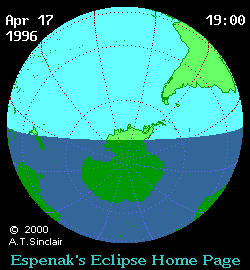 - Orthographic Map: Partial Solar Eclipse of 1996 Apr 17 - detailed map of eclipse visibility