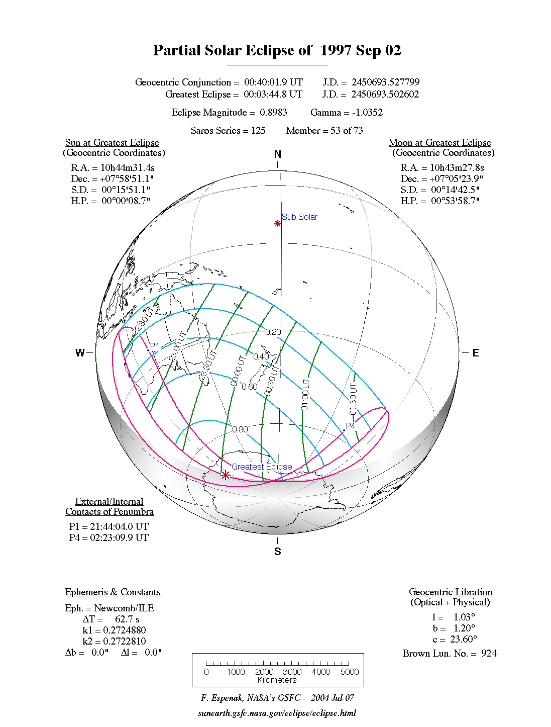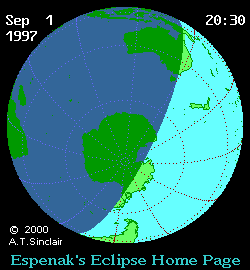 - Orthographic Map: Partial Solar Eclipse of 1997 Sep 02 - detailed map of eclipse visibility