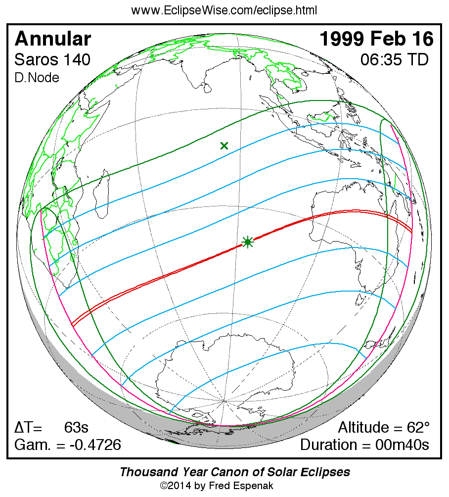 - Orthographic Map: Annular Solar Eclipse of 1999 Feb 16 - detailed map of eclipse visibility