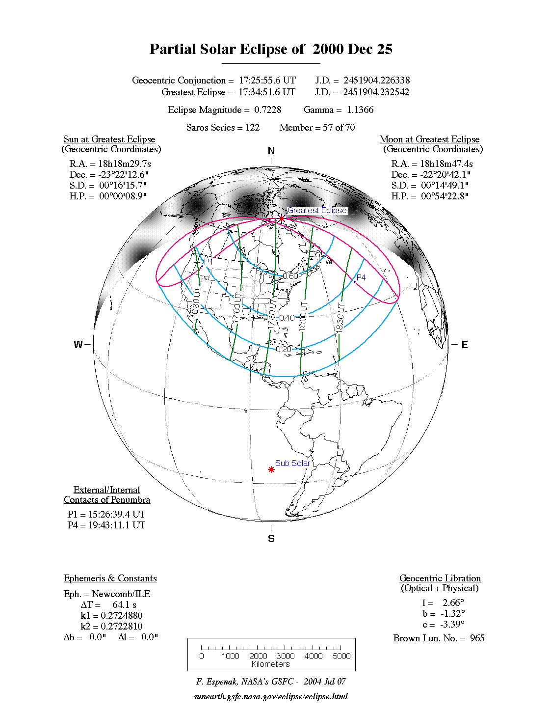 - Orthographic Map: Partial Solar Eclipse of 2000 Dec 25 - detailed map of eclipse visibility