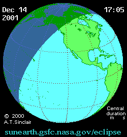 - Animated Map: Annular Solar Eclipse of 2001 Dec 14 - animated map of the Moon's shadows across Earth