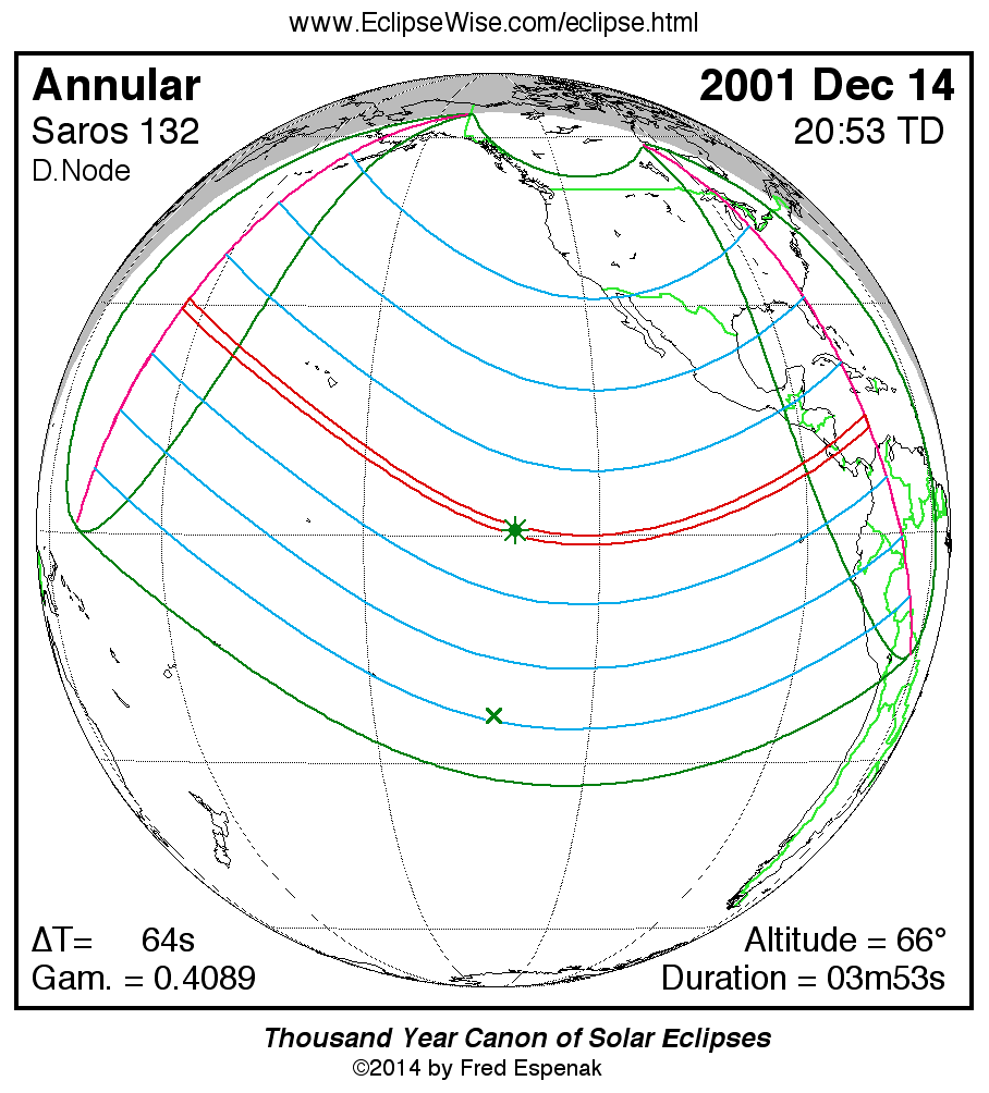 - Orthographic Map: Annular Solar Eclipse of 2001 Dec 14 - detailed map of eclipse visibility