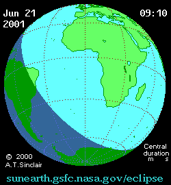 - Animated Map: Total Solar Eclipse of 2001 Jun 21 - animated map of the Moon's shadows across Earth