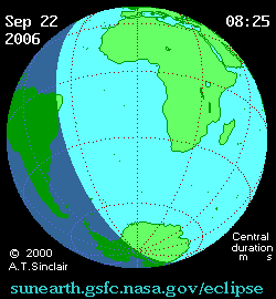 - Animated Map: Annular Solar Eclipse of 2006 Sep 22 - animated map of the Moon's shadows across Earth