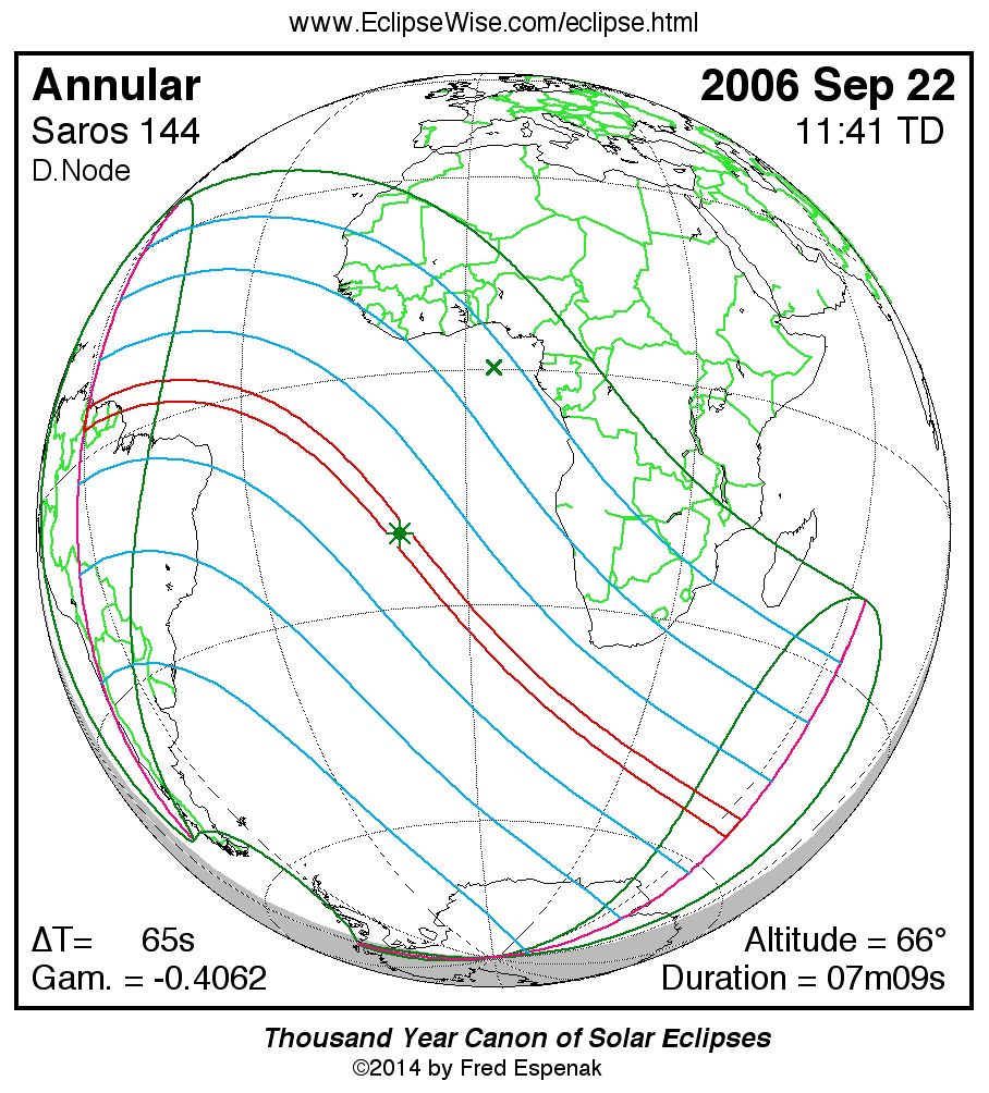 - Orthographic Map: Annular Solar Eclipse of 2006 Sep 22 - detailed map of eclipse visibility
