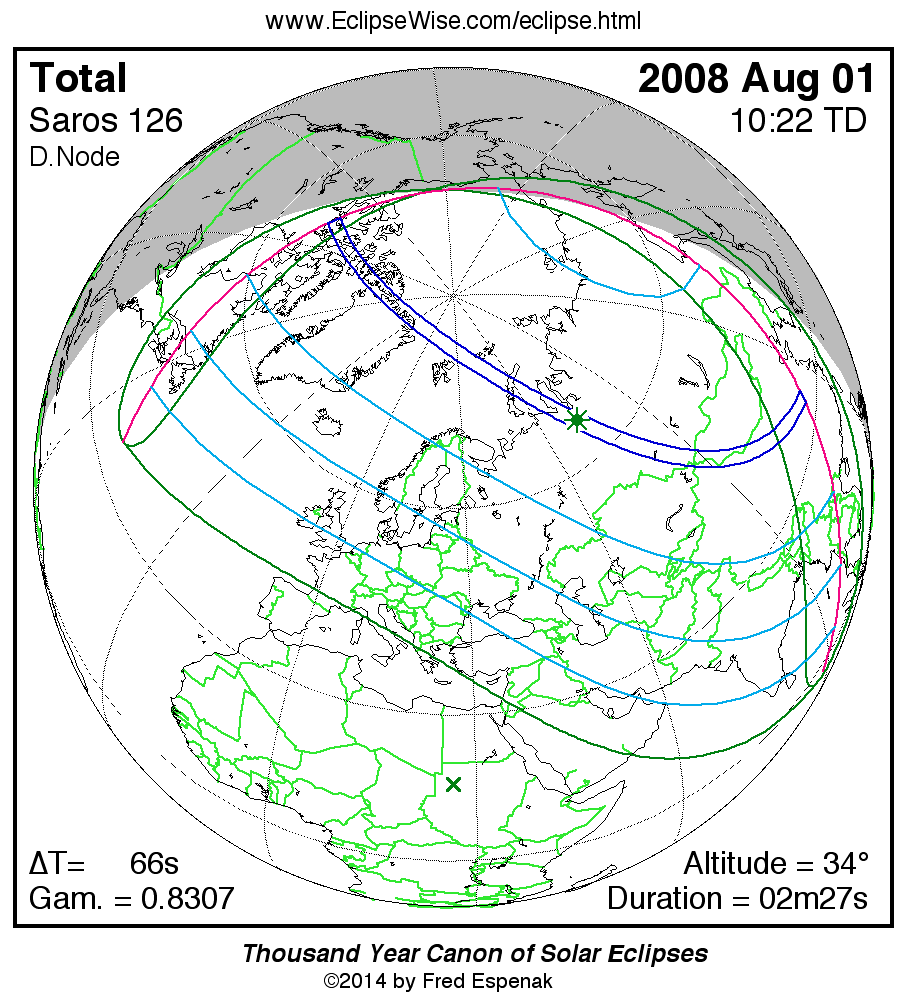 - Orthographic Map: Total Solar Eclipse of 2008 Aug 01 - detailed map of eclipse visibility